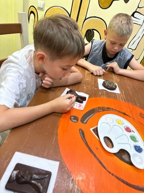 В практическую экскурсию входит: шоколадный билет, лекционная часть, дегустация шоколада, изготовление шоколадного батончика и упаковка его в ретро-этикетку, чаепитие.